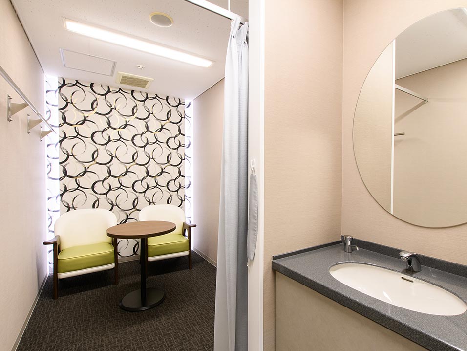 男性用と女性用の更衣室があります。お着替えや身だしなみを整える場所としてご利用いただけます。