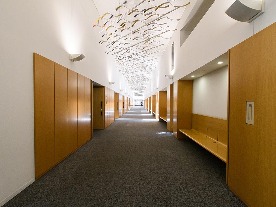 周囲の緑が斎場を包み込み、穏やかな空間となっています。